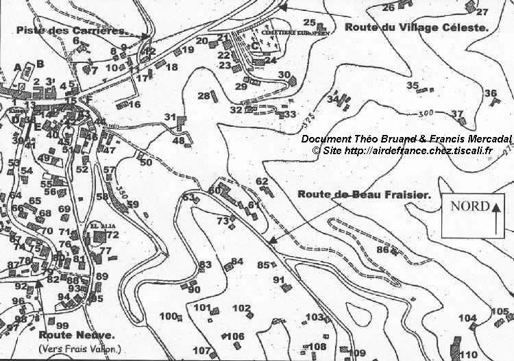 Propr. Clairefontaine (Delrieu) Pascal (Horticulteurs) 29, 30. Colin, Heidsieck, Rognier (+ 21, 22, 23, 24, 33, 34) 31. 32. "chemin des eucalyptus" Gagnaire-Walter (Dar es Saada) 33, 34. Colin, Heidsieck, Rognier (+ 21, 22, 23, 24, 29, 30) 35. 36. 37. 38. Départ Autobus vers ALGER. 39. Edicule. 40. Olivencia. 41. 42. 43. 44. xxxx (Pharmacie). 45. Vercellin (Lou Paradou) 46. 47. Ceci, Candella, Ségui. 48. 49. 50. Boue 51. 52. Brignon. 53. Morel Stutz (Immobilier). 54. 55. 56. 57 58. Solivérès et tante Inès, Logréco (cordonnier) et Puech Florentine, Arbona (camionneur), Ferrer (coiffeur) et fils. | 59.