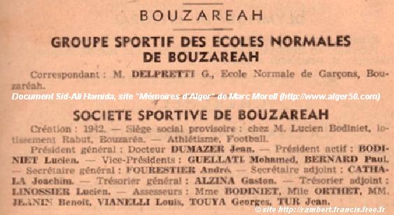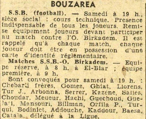 club de l'époque, la SSB (Société Sportive de Bouzaréah),