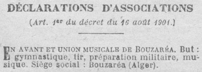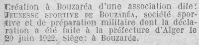 Sportive de Bouzaréa publiée au JO du 5 juillet 1922 |