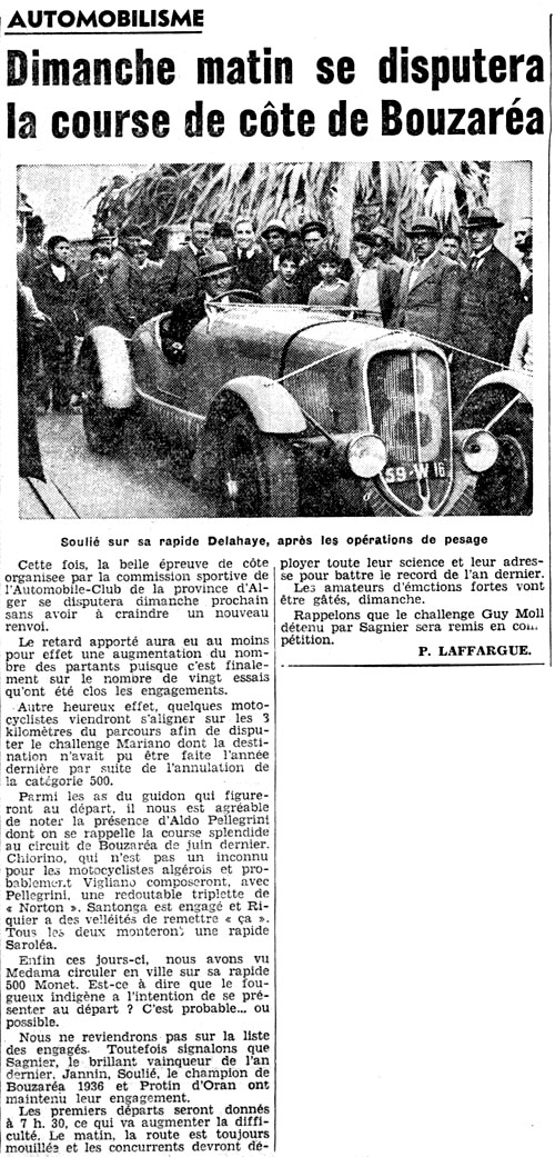 Georges Soulié présenta à 8 h 30 sa Delaye au contrôle