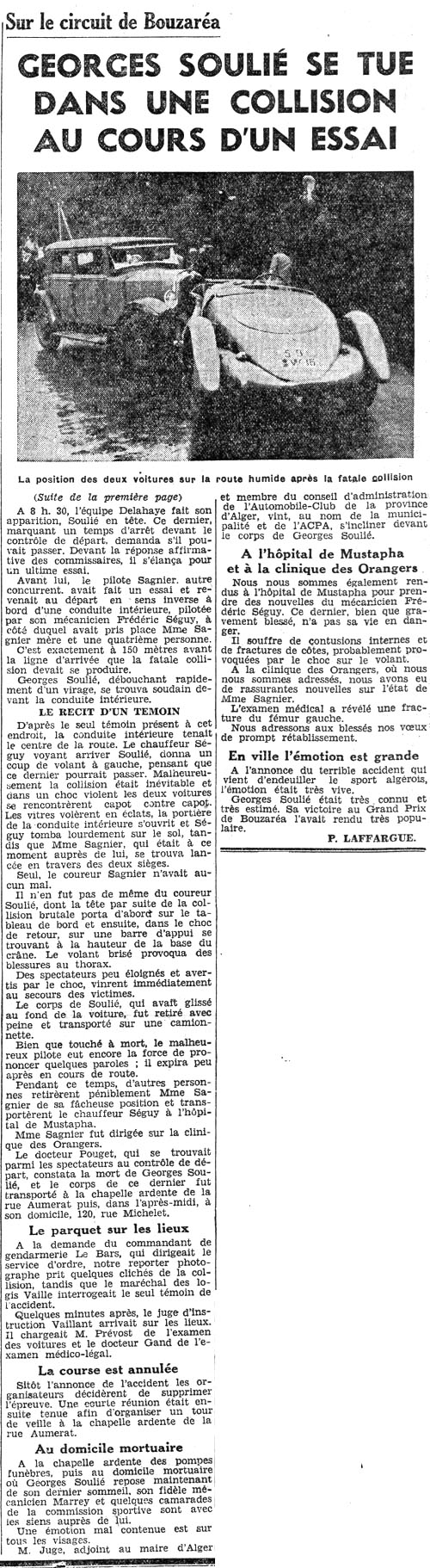 la suite de cet accident ayant causé la mort de Georges Soulié