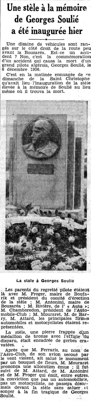 où il avait trouvé la mort (Écho d'Alger du 13 juin