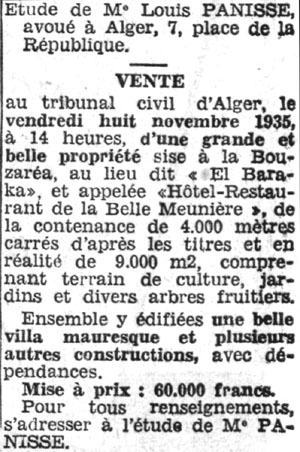 trouvées dans l'Écho d'Alger on trouve qu'en 1931