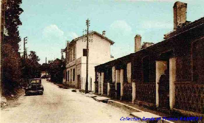 A l'entrée du village, la route, qui vient de l'École Normale, mène à la place, que l'on devine au fond.