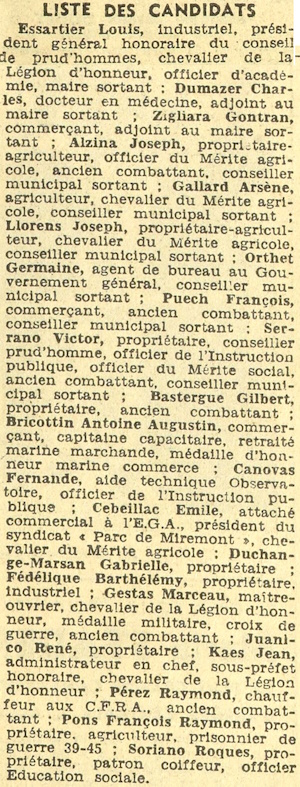 maire sortant : Dumazer Charles, docteur en médecine, adjoint