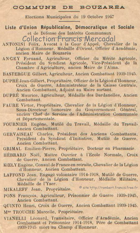 municipal sortant ; Gallard Arsène, agriculteur, chevalier