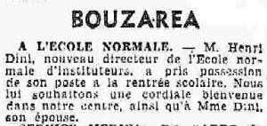 | Dans l'Écho d'Alger du 30 octobre 1959, annonce de la prise de poste de M. Henri Dini, nouveau Directeur de l'ENIB |