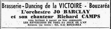 ![]() Dans l'Echo d'Alger du 12 décembre 1959, l'annonce des réveillons de Noël et du Jour de l'An à la Brasserie-Dancing de la Victoire (Maïoné) |