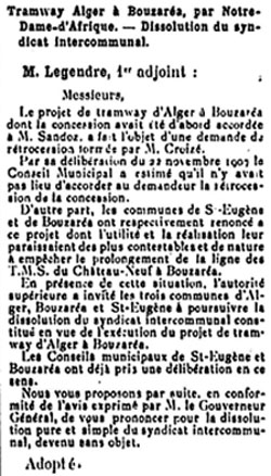 Municipal Officiel de la Ville d'Alger séance du 10 juillet 1909 |