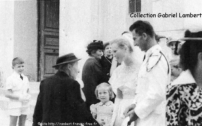| Dans la cour devant le presbytère, le jour du mariage de Berthe Lambert en 1951 |
