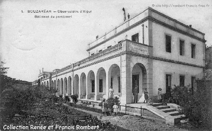 | Ci dessous, la même carte postale, écrite par Marguerite Croisé qui, comme son père Achille, a travaillé à l'Observatoire. Sur le site http;://alger-roi.fr, est présentée une autre de ces cartes postales, écrite en 1910 et signée par la petite Marguerite Sy (à droite avec le cerceau) dont le père (sous le péristyle) était astronome à l'Observatoire. |