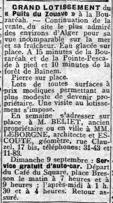 Annonce parue dans l'Echo d'Alger du 8 septembre 1923