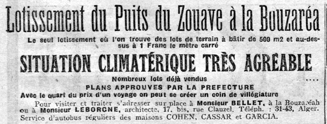 BOUZARÉAH - La Lotissement du Puits du Zouave