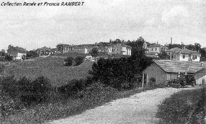 | Ce chemin empierré au nom prétentieux "d'Avenue de Sainte-Marie" montait vers l'église, dont on voit le clocher, au fond, en évitant la place du village. Dans ce quartier, s'installa au cours des années 1950, une fabrique artisanale de yaourts, dont la marque "Sainte-Marie" faisait évidemment référence au lieu où ils étaient confectionnés. |
