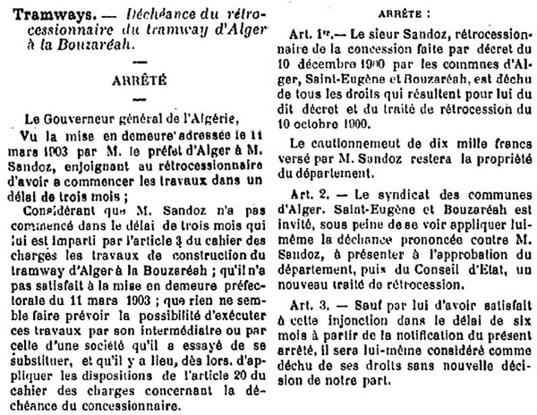 d'intérêt pour la construction du chemin de fer par Bab-el-Oued
