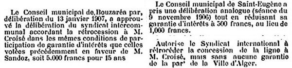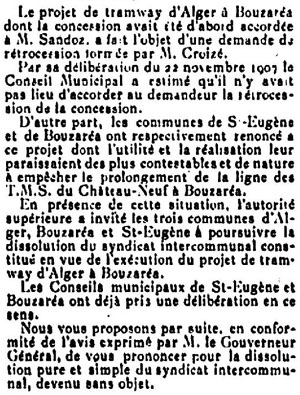 10 juillet 1909, le Conseil municipal d'Alger, d'accord avec ceux de Bouzaréa