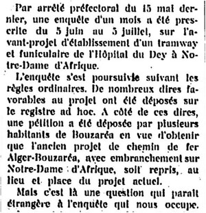 tramway et funiculaire entre l'Hôpital du Dey et Notre-Dame d'Afrique.