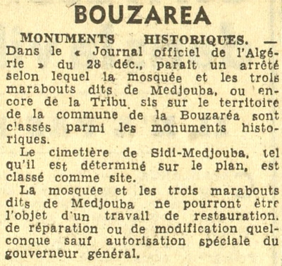 BOUZAREA MONUMENTS HISTORIQUES Dans