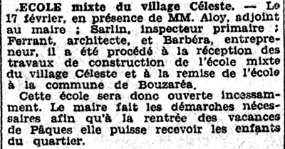 des travaux de construction de l'école mixte du Village Céleste (Echo d'Alger du 4 mars 1932) |
