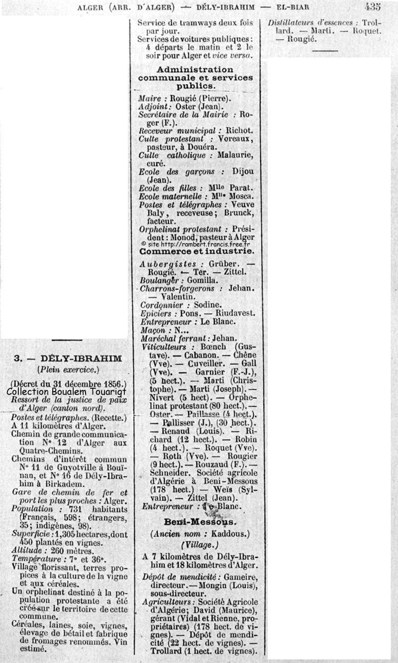La page "DELY IBRAHIM " de l'annuaire des professions de 1900