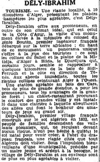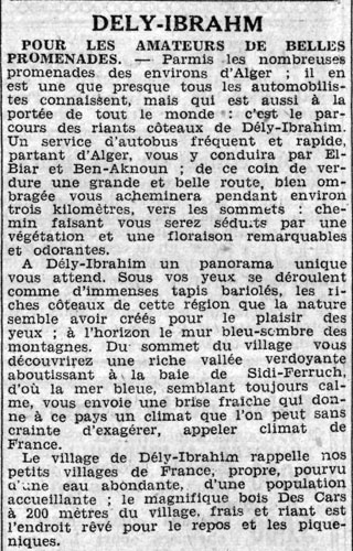 ![]() Tourisme à Dély-Ibrahim (Echo d'Alger du 4 janvier 1933) |