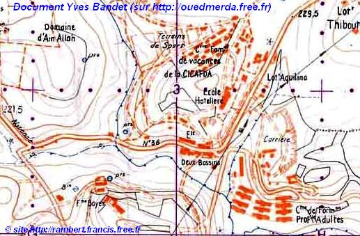 | En venant d'Alger, après avoir passé El-Biar, Châteuneuf et Ben-Aknoun, puis, quitté le lieu dit "Les deux Bassins", la route serpentait en un côte sinueuse jusqu'à un embranchement qui, sur la gauche, conduisait vers le petit village d'El-Achour. A cet endroit se dressait la ferme Kadouce où vivait une tribu arabe et un peu plus loin, celle de la famille Boyer s'étendait sur les hauteurs. Arlette SCHNEIDER "Les collines de l'espoir", Éditions Hugues de Chivré (2006) |