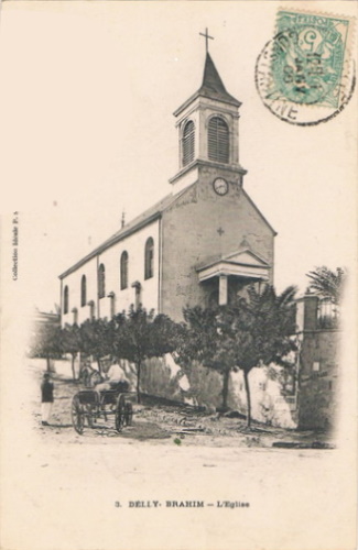 | Deux cartes postales de l'église : la vue de gauche (probablement vers 1910-1920) est très largement antérieure à celle de droite qui date des années 1950 et qui provient de la collection personnelle d'Isidore Rodriguez. Ce cliché permet de mieux voir le porche de l'église et, d'apprécier la sobriété du Monument aux Morts, au premier plan. |