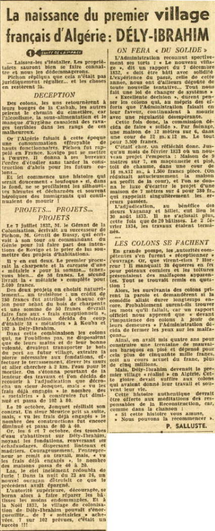 Et à la Noël 1832, le village de colonisation de Dély-Ibrahim