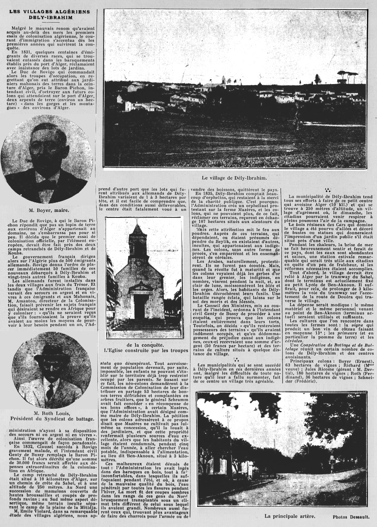 Principaux colons : Boyer (Ernest), 63 hectares de vignes ; Richard (Mme