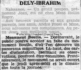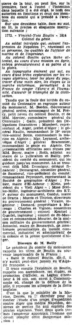 prochaine inauguration du monument Boutin (Echo d'Alger du 23 mai 1930)