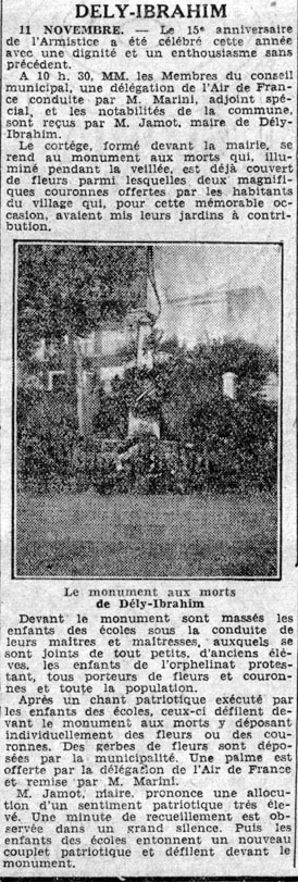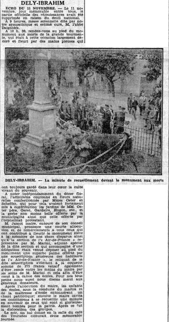 | Cérémonie du 11 novembre 1933 (Echo d'Alger du 17 novembre 1933) | 1(èeme anniversaire de l'aArmistice de 1918 : cérémonie du 11 novembre 1934 (Echo d'Alger du 14 novembre 1934) |