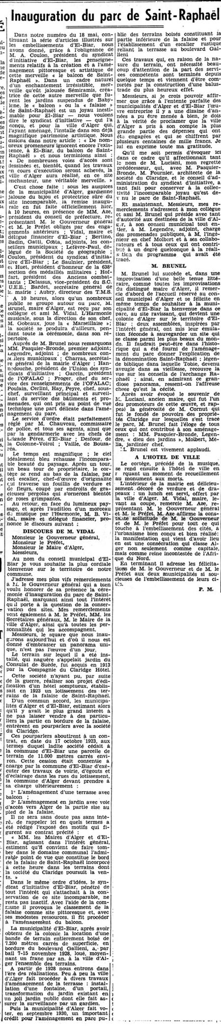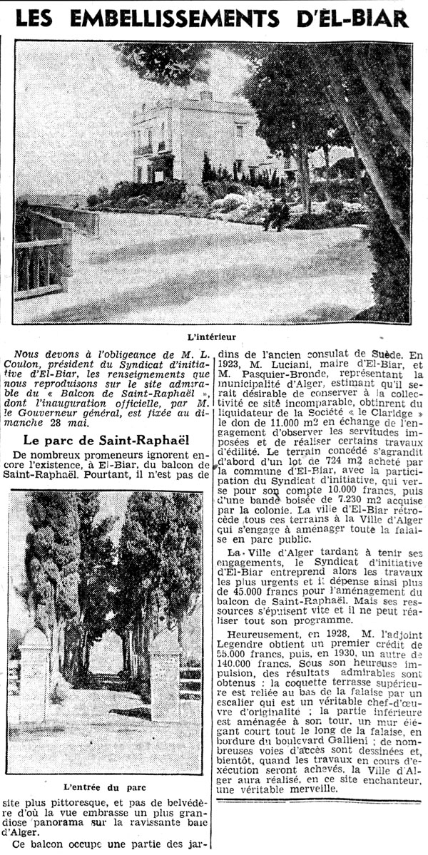 d'Initiative d'El-Biar (Echo d'Alger du 18 mai 1933) dont le compte-rendu