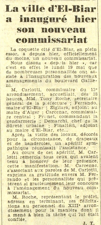 adjoint au maire d'Alger ; Carcenac, commissaire central ; Prunet, commandant