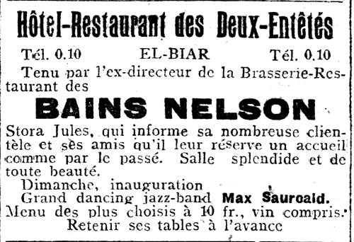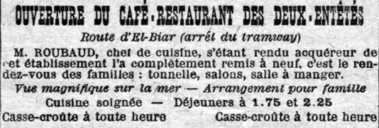 de l'ouverture du Café-Restaurant des Deux-Entêtés (Echo d'Alger du 16 octobre 1915) |