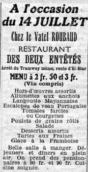 | Menu du 1er Juillet 1916 | Menu du 14 juillet 1916 | Menu de Noël 1920 |