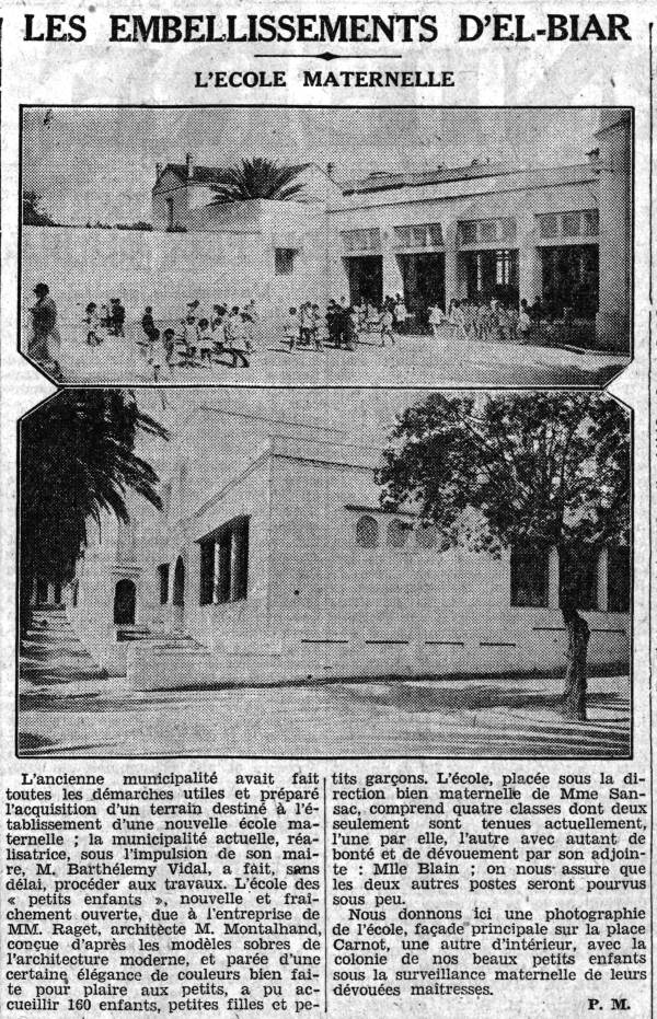 L'école maternelle (Echo d'Alger du 13 octobre 1932)