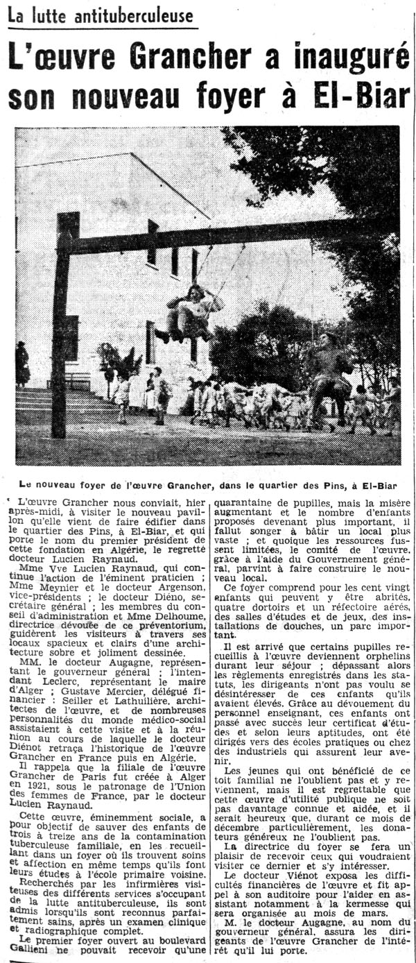 enfants issus de milieux tuberculeux. Une premiere structure ouverte boulevard