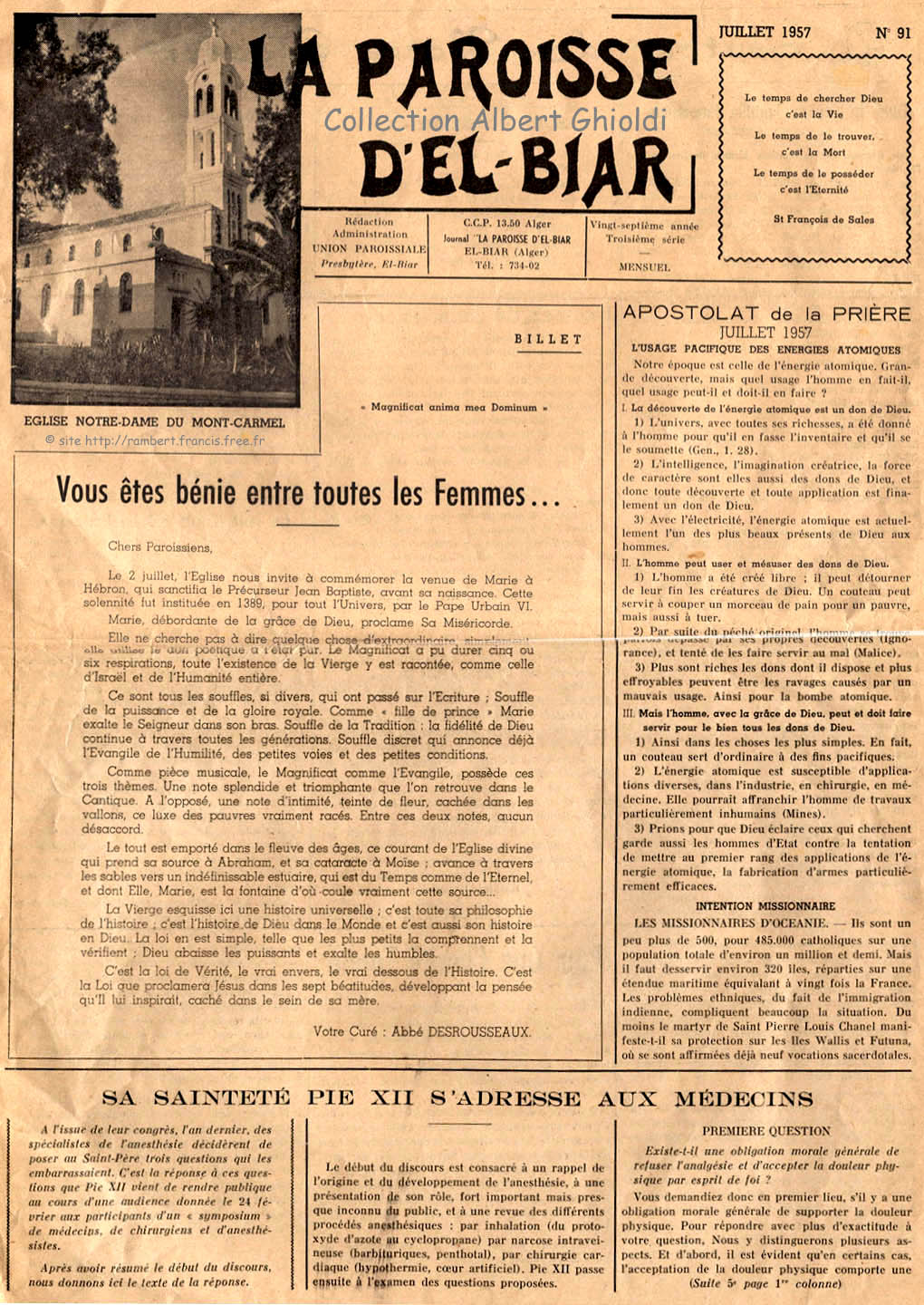 Paroisse d'El-Biar" n°91 juillet 1957