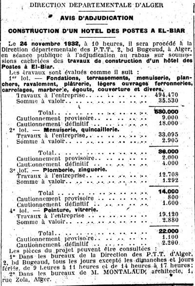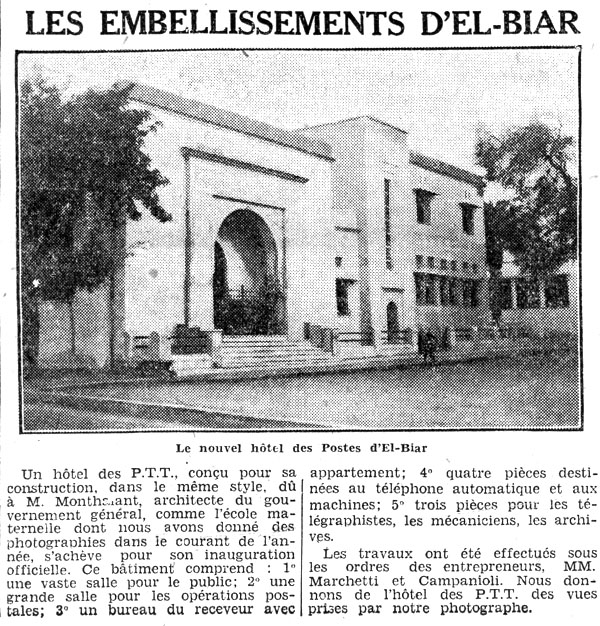 | Le nouvel Hôtel des Postes conçu par M. Monthalant, architecte du Gouvernement Général |