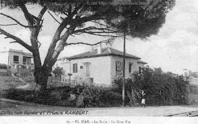 | Un chemin, à dr. conduit à (200 m.) Birtraria et à (500m.) à la villa Scala, ancienne habitation mauresque aménagée pour l'instruction d'enfants aveugles. (Les Guides Bleus "Algérie-Tunisie", 1950) |