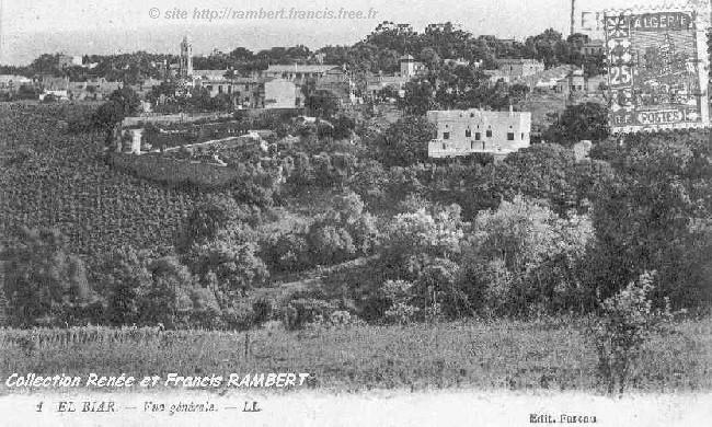 Vue du village d'El-Biar, prise de la route de Château-Neuf. Les bosquets, les jardins, les champs, les vergers et les vignes n'ont pas encore été remplacés par des maisons, des villas ou de petits immeubles.