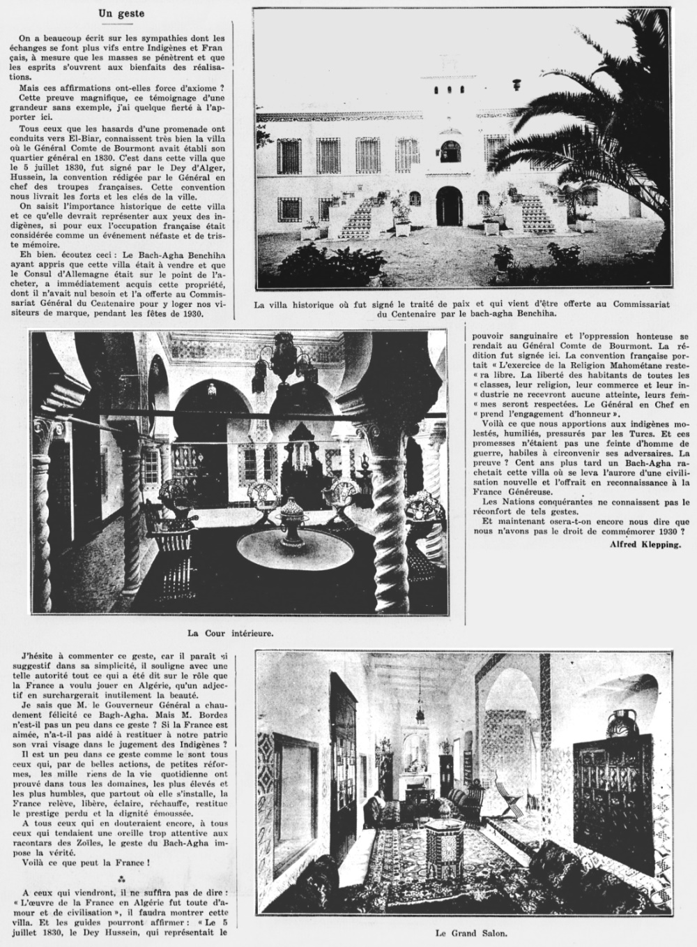 La preuve ? Cent ans plus tard un Bach-Agha rachetait cette villa où