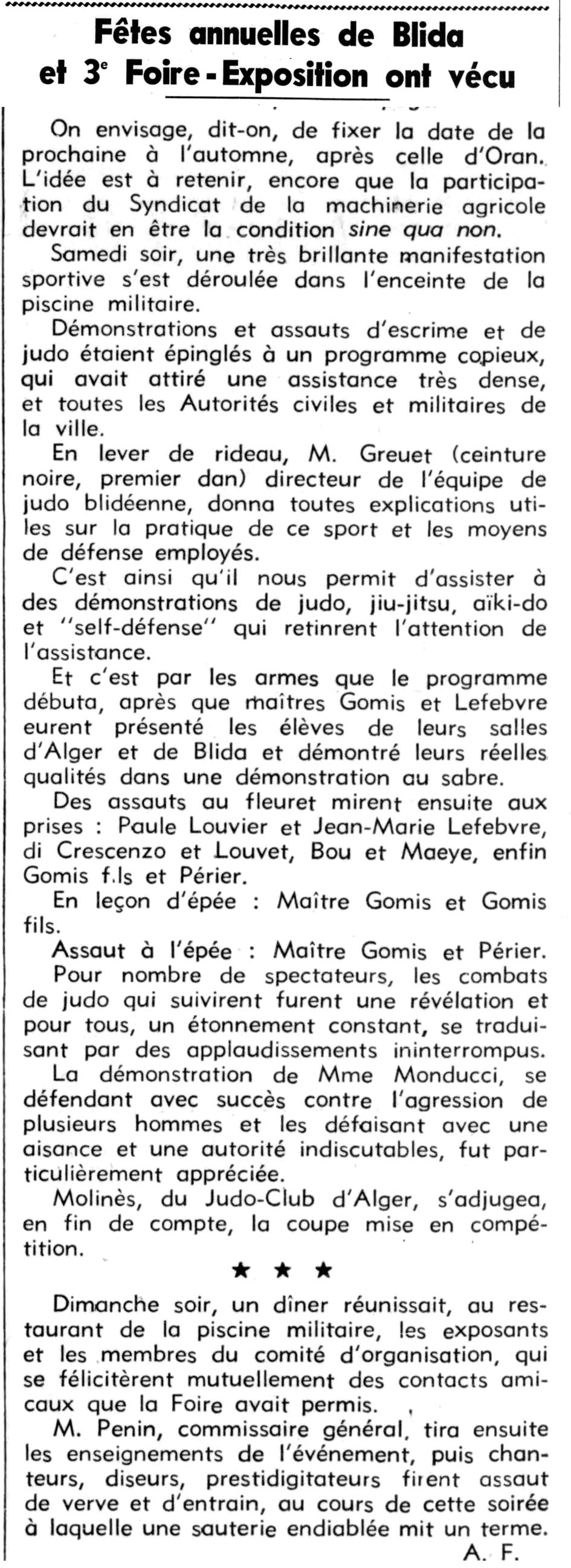La vie à Blida à travers la presse Accédez à l'ECHO d'ALGER de 1946, 1947, 1948, 1949 Vie quotidienne à travers la presse Quelques extraits de journaux à Blida Blida dans l'Echo d'Alger et la Dépêche Quotidienne de 56, 57, 58, 59, 60, 61 Blida, il y a 100 ans dans la presse algérienne Journaux paroissiaux de 1912 et 1913 le Régional du 10 septembre 1953