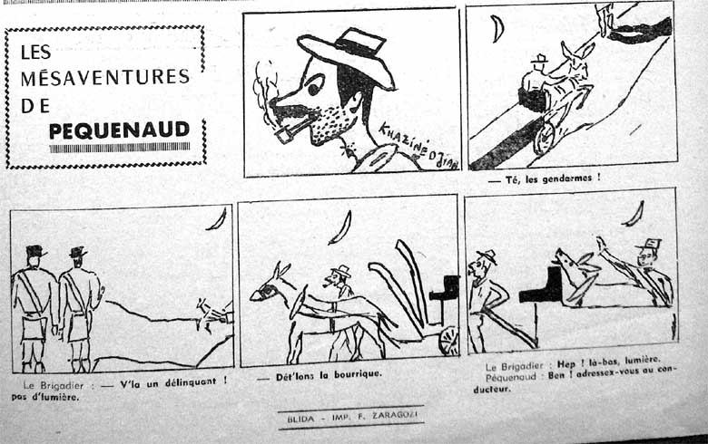 Le bulletin de liaison est créé au cours de la deuxième année d'existence de l'association. Parmi ces copains qui se chargent de le faire vivre, on retrouve régulièrement les noms de A. Khazinedjian, C.Finateu, P. Gardenne, C. Camilieri, M C El Robrini, J.P Vinciguerra et C.Labatut. Quelques autres jeunes blidéens apportent leur concours à ce bulletin: Robert Mourana, Francis Lillo, Dominique Delort, Pierre Oudot, Hubert Aïche, P. Rochard, G. Hazan, E.Roche, E.Ricci, J.Calatayud. On peut voir à travers ces quelques copies du bulletin que celui-ci est plaisant et aborde des sujets autres que le cinéma. On trouve par ailleurs un récit sur les Etablissements Spiteri, une Bande Dessinée et les enquêtes de José Devoiltout. Une courte liste des films qui ont retenu l'attention de nos jeunes amis donne une peinture particulère de l'époque: Robin des Bois, L'Homme tranquille, Les Robinsons des Mers, Limelight, Soldat Boum, Sous le plus grand chapiteau du monde, le Prince de Bayaya, le Grand Cirque et le Corsaire Rouge. |