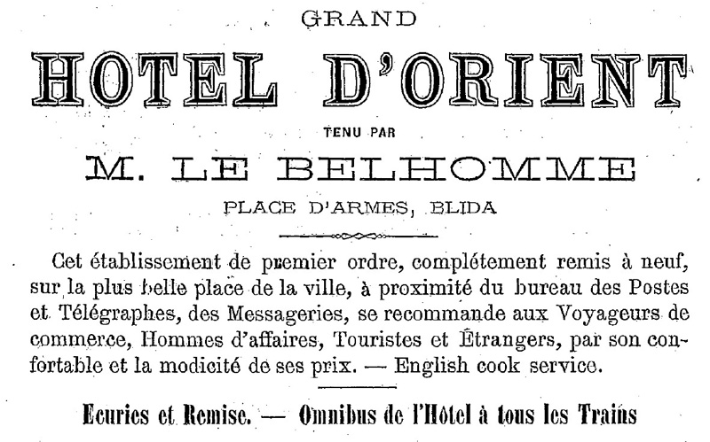 (1) https://blidanostalgie.pagesperso-orange.fr/place%20armes/place%20d%20armes.htm (2) https://blidanostalgie.pagesperso-orange.fr/PUB-anciennes/blida-annuaire-1880.pdf (3) https://blidanostalgie.pagesperso-orange.fr/visiteurs/edouard%20VII/edouardVII.htm