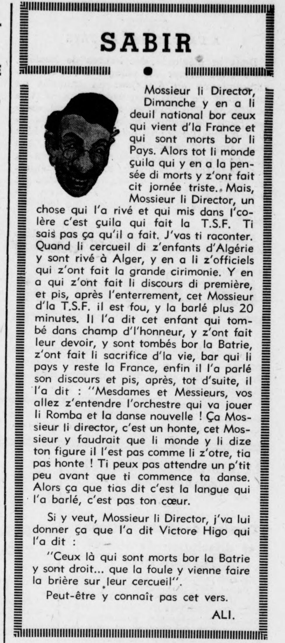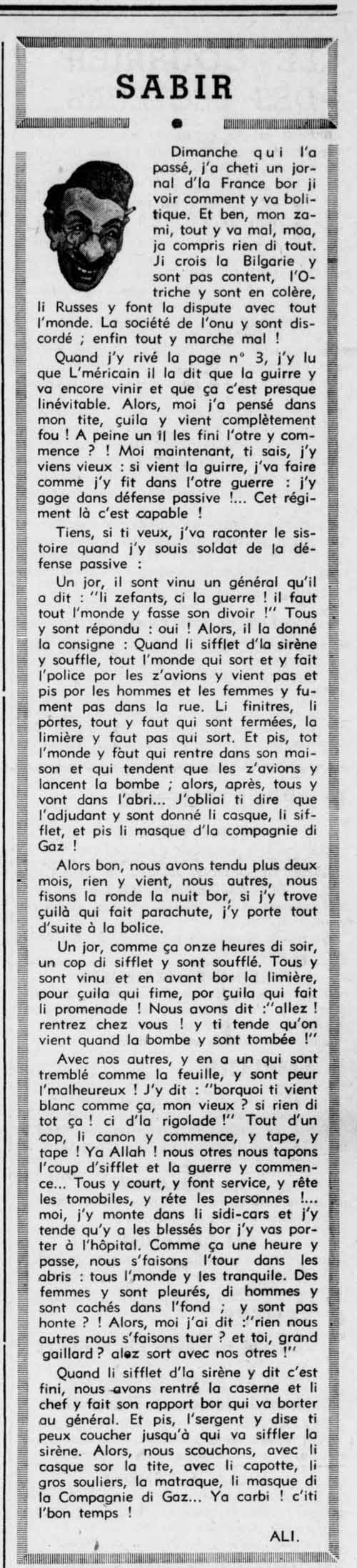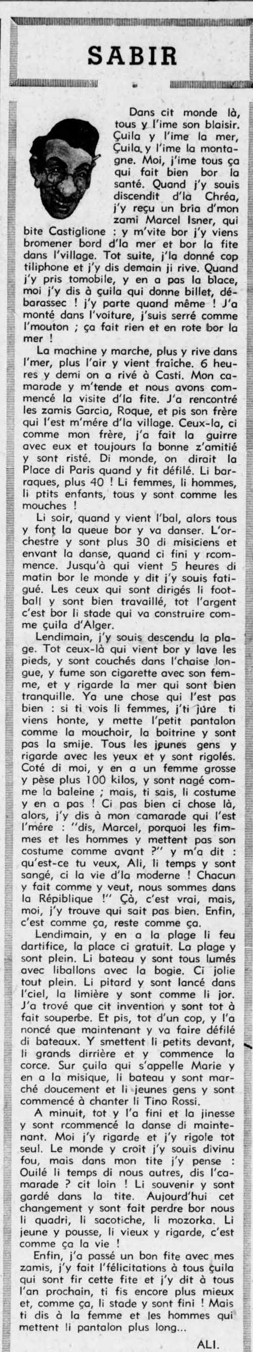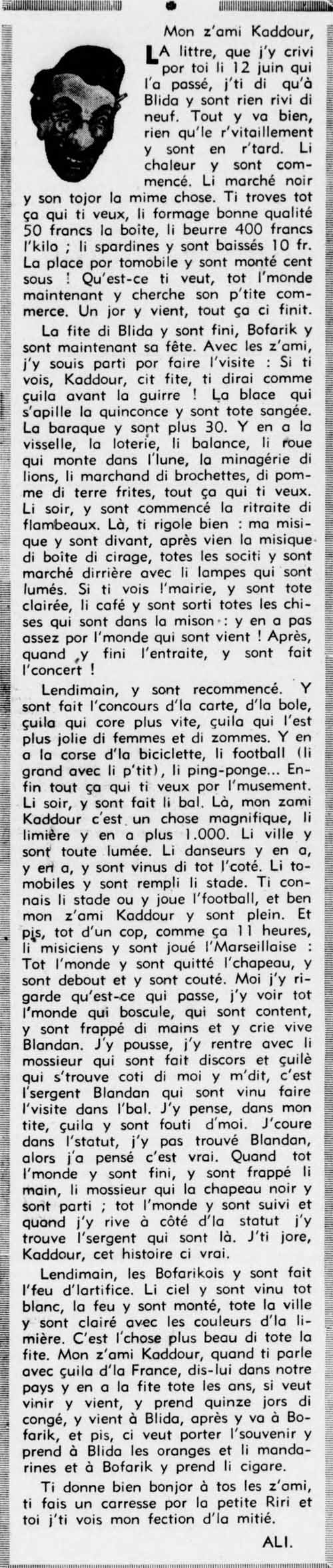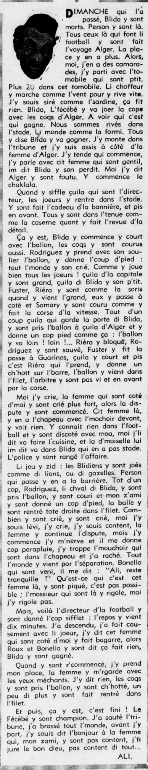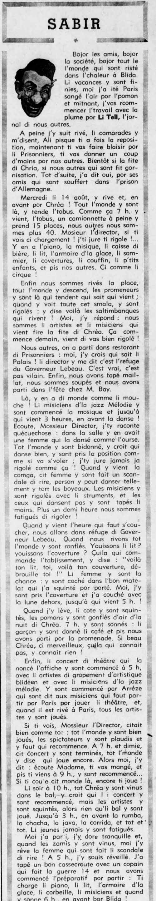 Certains se souviennent peut être de cette rubrique du Tell rédigée par un rédacteur du journal sous le pseudonyme d'ALI. Son premier article date du 23 mars 1946.