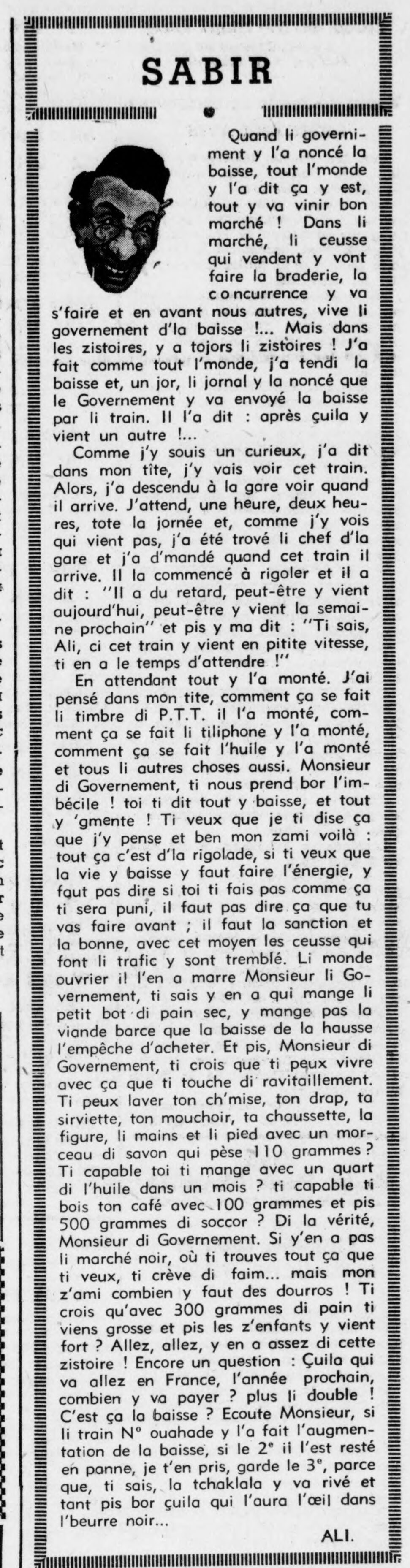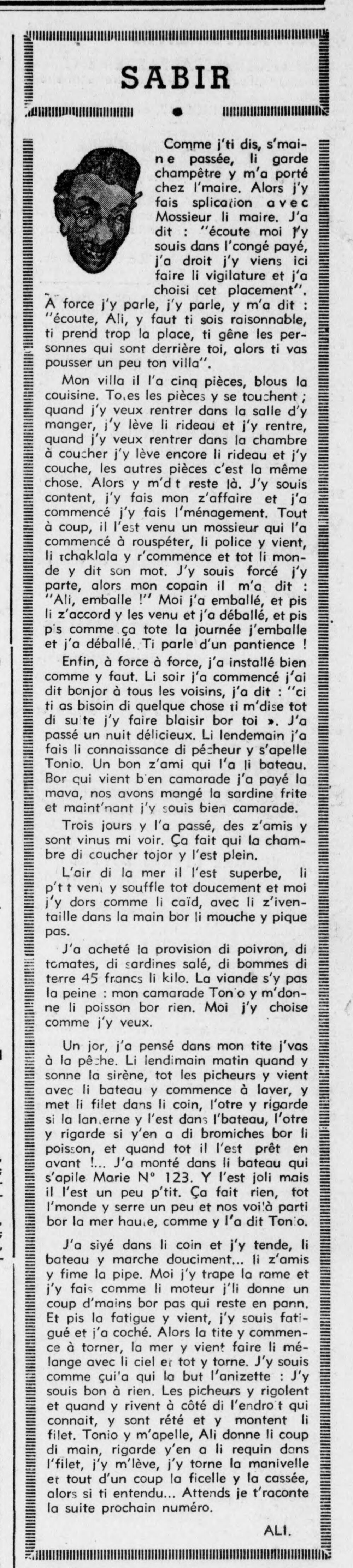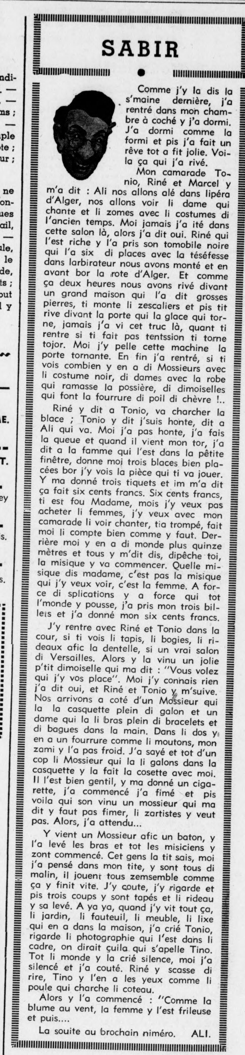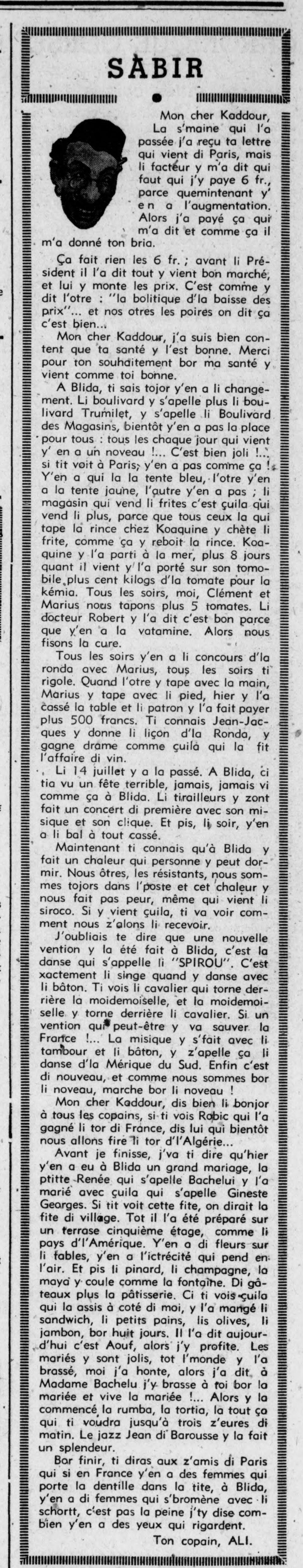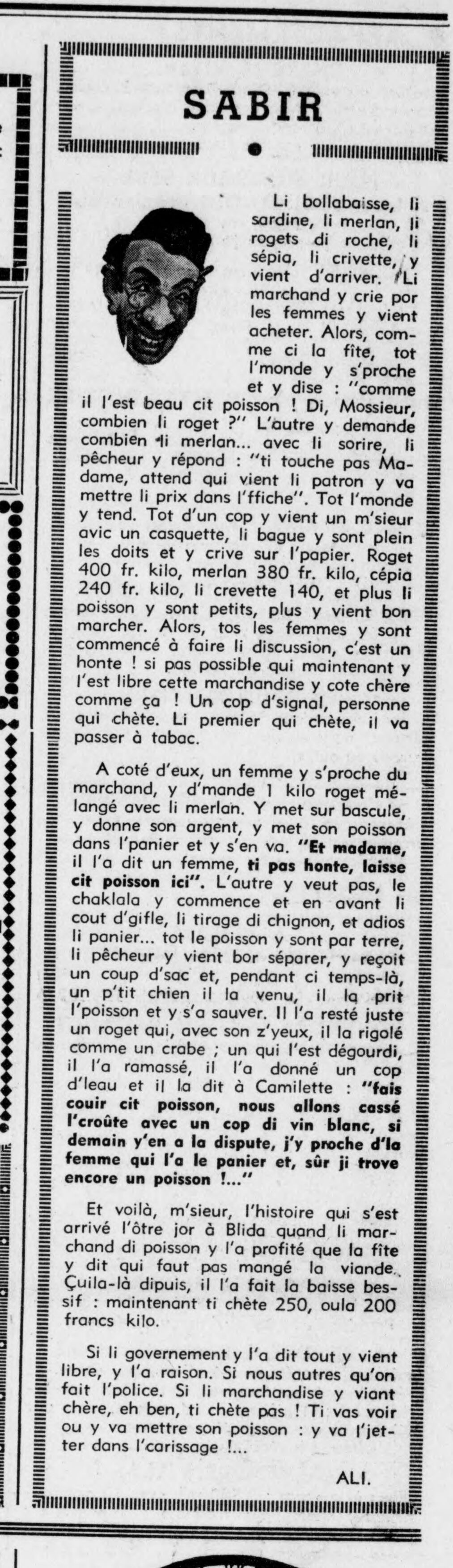 Certains se souviennent peut être de cette rubrique du Tell rédigée par un rédacteur du journal sous le pseudonyme d'ALI. Son premier article date du 23 mars 1946.