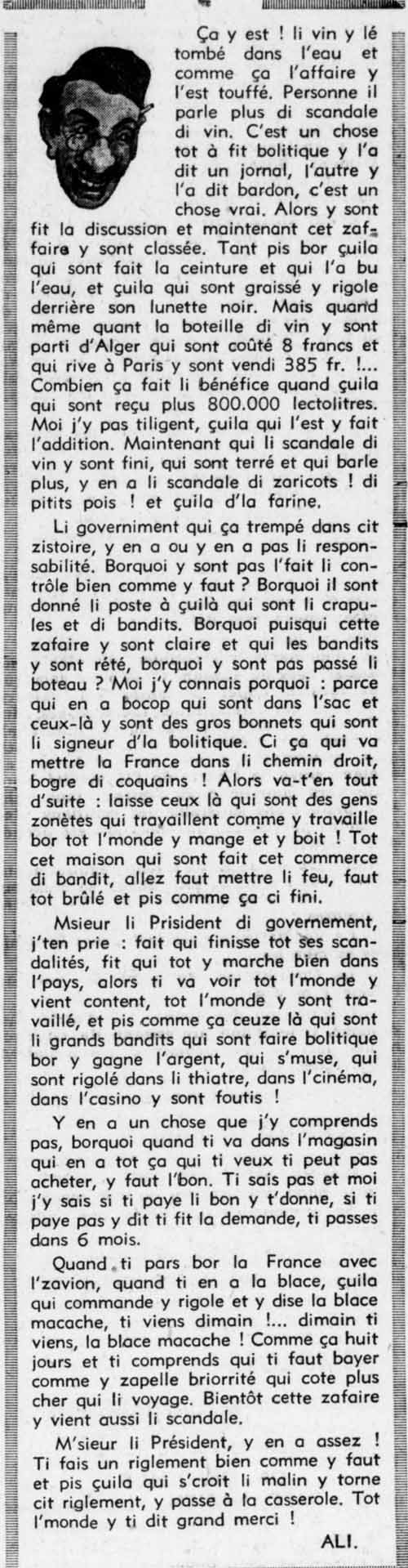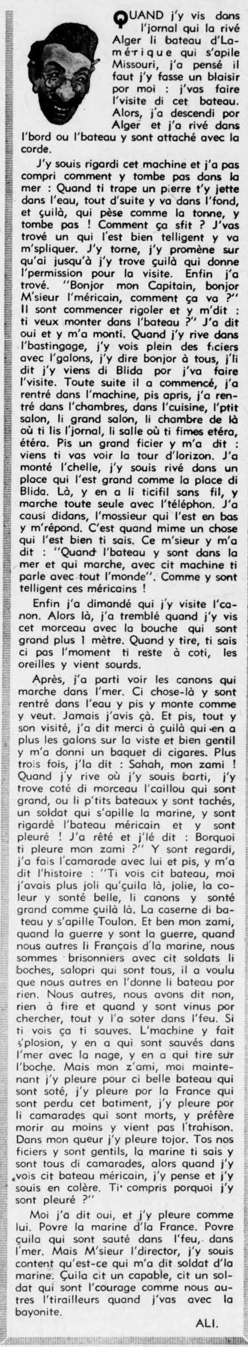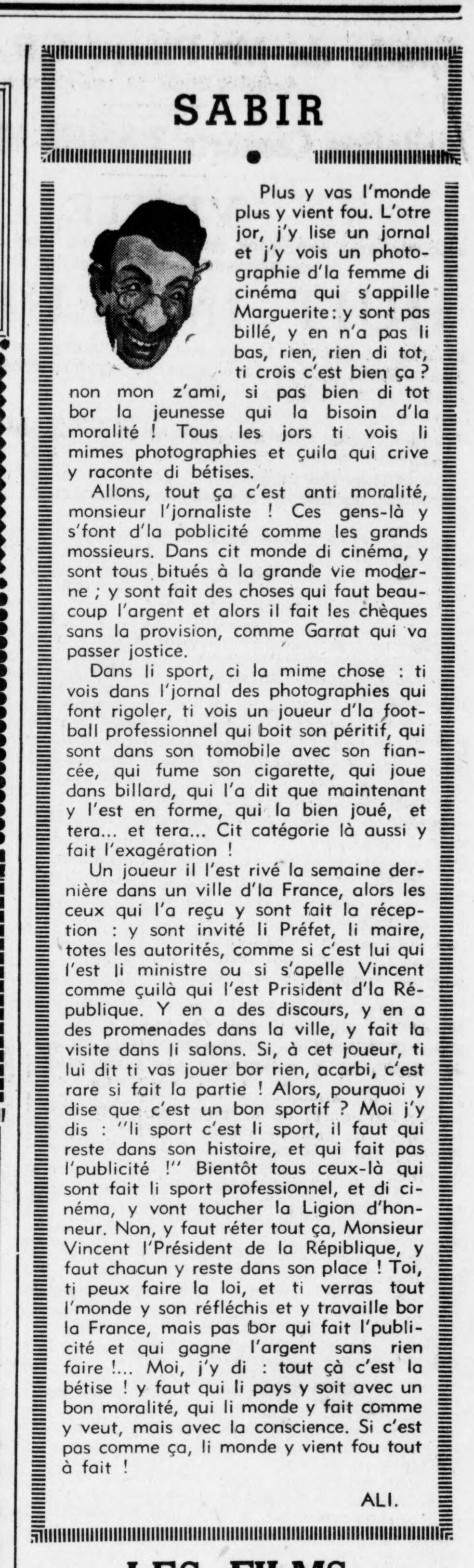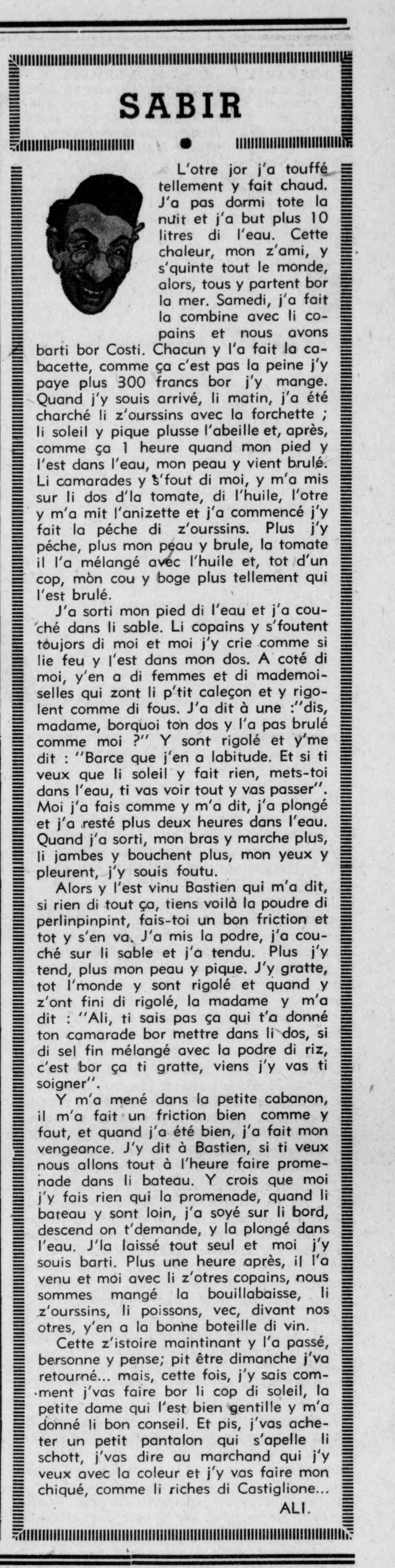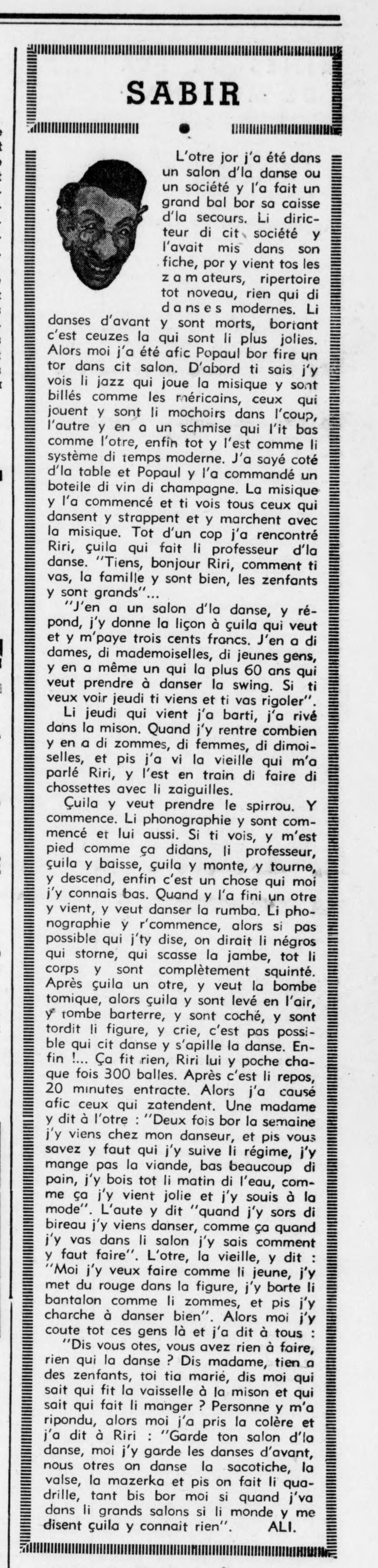 Certains se souviennent peut être de cette rubrique du Tell rédigée par un rédacteur du journal sous le pseudonyme d'ALI. Son premier article date du 23 mars 1946.