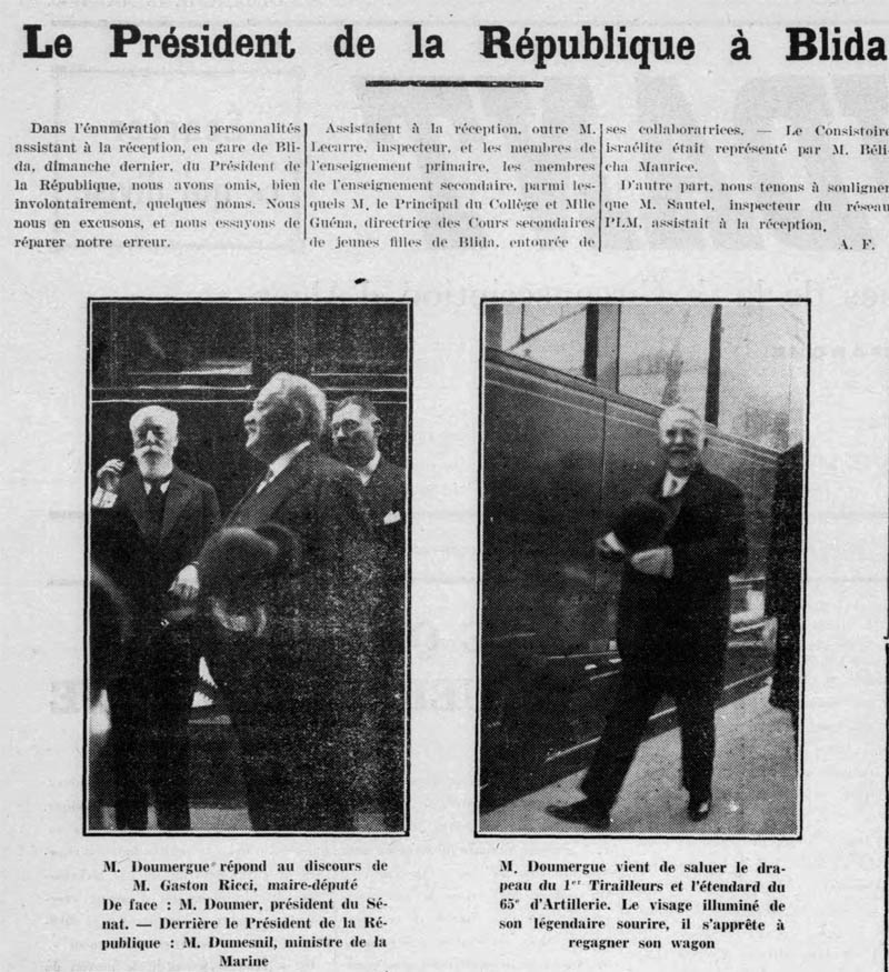 Le Gouverneur Général Laferriere en visite à Blida le 2/12/1899 |