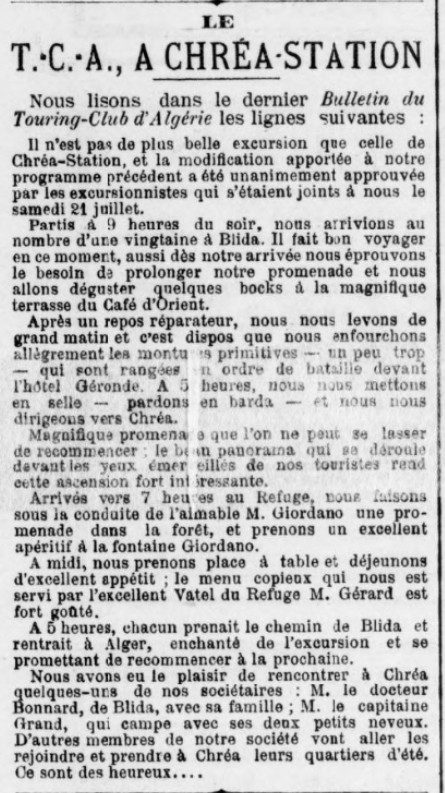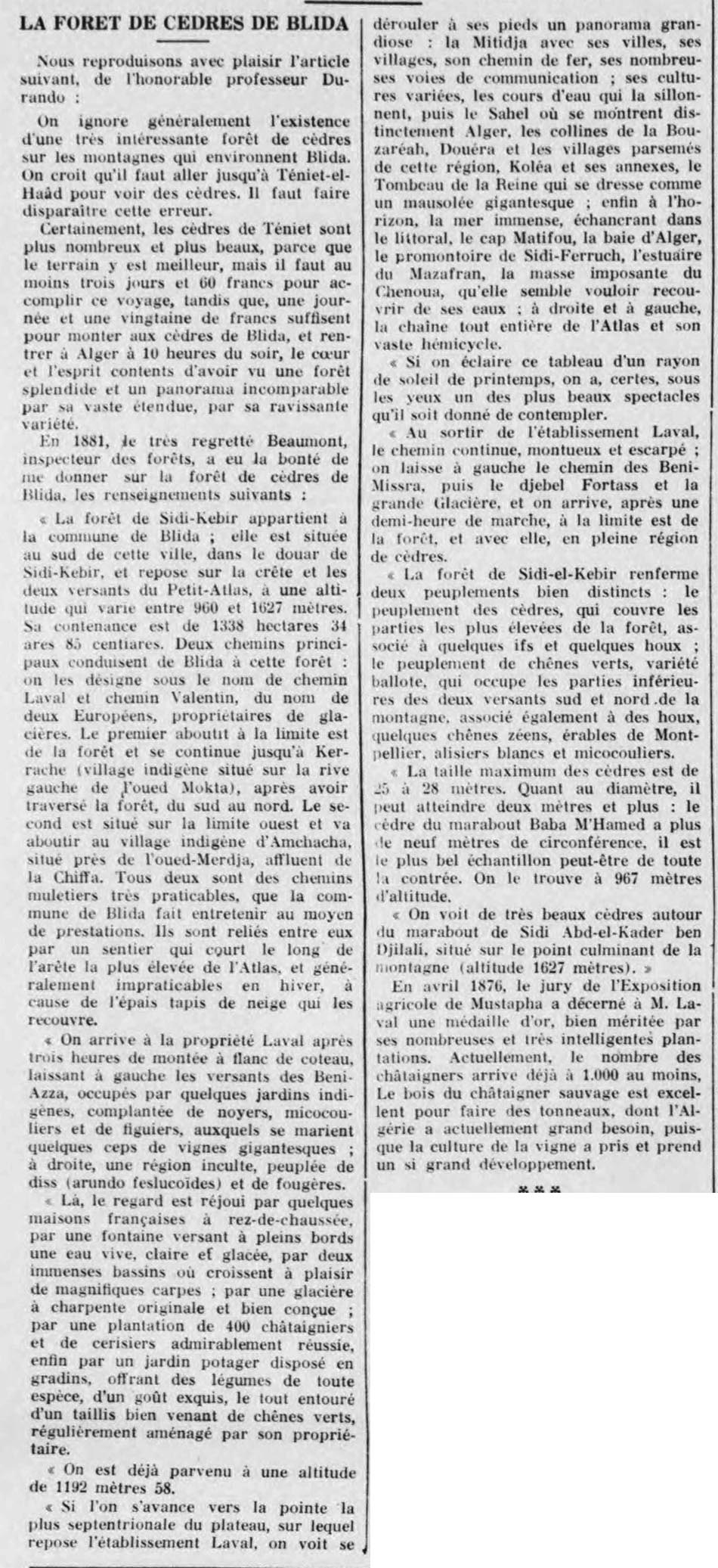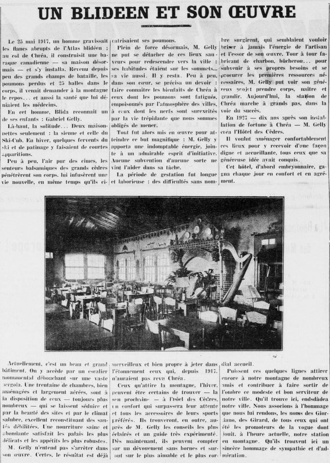 Une figure de Chréa: Gabriel Gelly Un texte de Gaston RICCI sur CHREA Chréa raconté par Raymond Darnatigues ********* La forêt de cèdres par le Prof Durando (1887) Le Déboisement de l'atlas de Blida et ses conséquences par E.Ficheur (1904)